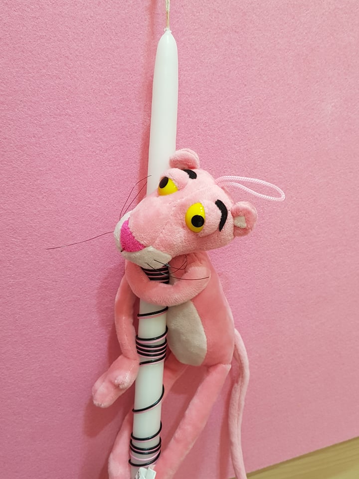 Λαμπάδα με το ροζ πάνθηρα σε λούτρινο.